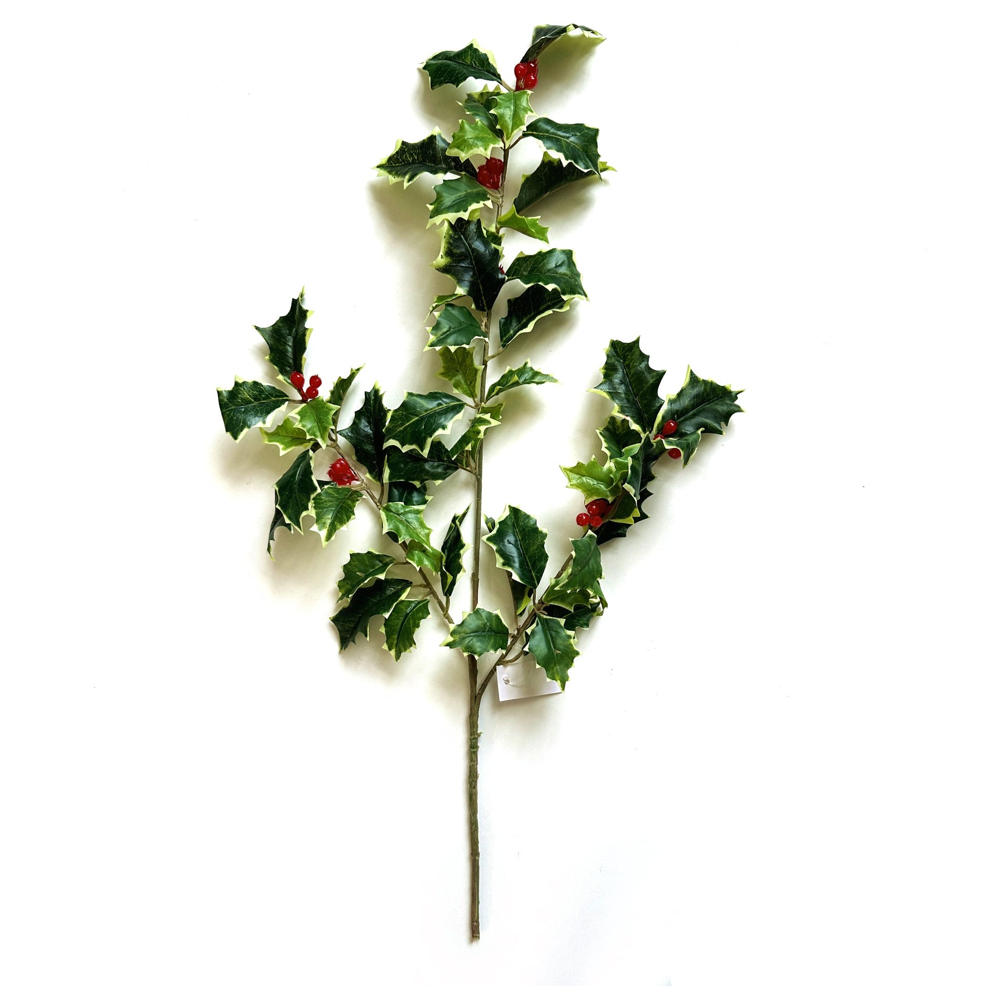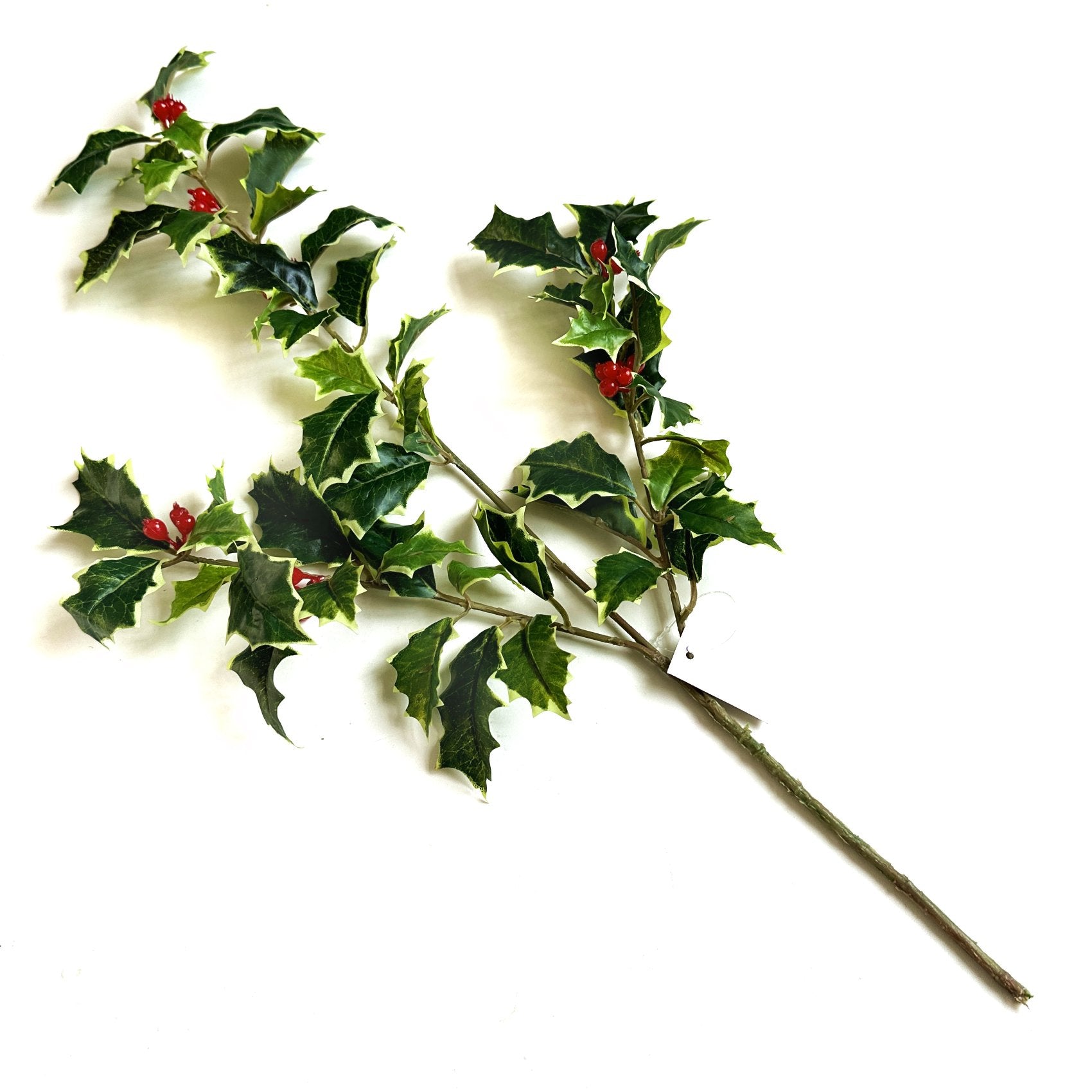 This lovely artificial variegated Holly branch measures 51cm with the stem.
